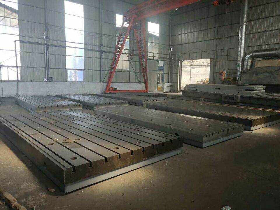 鏜銑床工作臺(tái)的材質(zhì):為縛度鑄鐵HT200-300,工作面硬度為HB220-350,經(jīng)過(guò)兩次人工處理(人工退火600度-700度和自然時(shí)效2-3年)對(duì)落地鏜銑床工作臺(tái),落地銑床工作臺(tái)進(jìn)行熱處理的目的是減少逐漸中的應(yīng)力,消除鑄鐵平板的部分白口組織,提高落地鏜銑床工作臺(tái),落地銑床工作臺(tái)工作表面的硬度和耐磨性,使該鑄鐵平臺(tái),鑄鐵平板的精度穩(wěn)定,耐磨性能好。